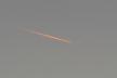На этой картинке нет обычных облаков. Самолет летит сквозь атмосферу слева направо, оставляя за собой инверсионный след. Инверсионный след обычно выглядит белым, однако большой объем воздуха по направлению на заходящее Солнце поглощает в основном голубой цвет, поэтому...